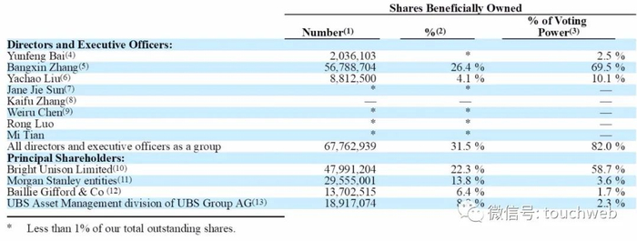 摩根士丹利持股为15.1%,有3.8%的投票权;Baillie Gifford & Co持股为7.9%,有2%的投票权;瑞银集团持股8.6%,有2.1%的投票权。