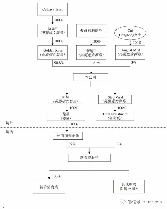 Cathaya Trust是以刘永好的家族成员为受益人的不可撤销的全权信托。Cathaya Trust的保护人为Adventure Way Pte. Ltd.,后者由刘永好及刘畅通过Medea Investments Limited控制。