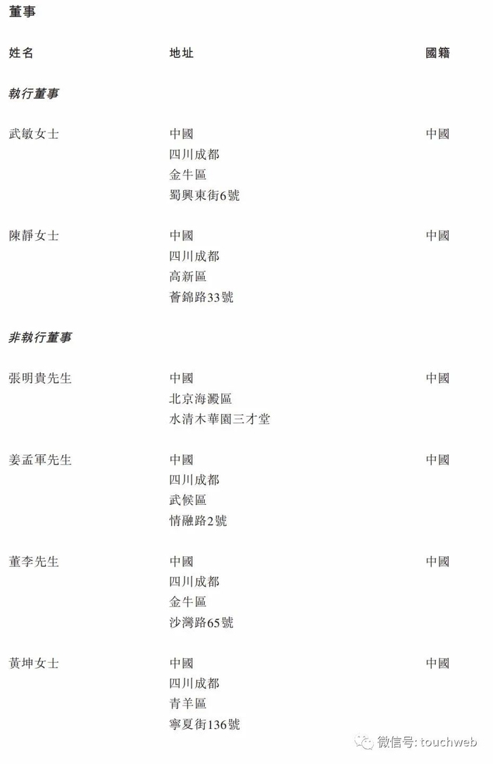 执行董事武敏女士、陈静女士;非执行董事为张明贵、姜孟军、董李、黄坤女士;独立非执行董事为曹麒麟、殷立基、李正国。