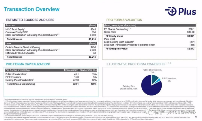 合并后公司市值约为33亿美元,并将获得约5亿美元的新融资,其中约1.5亿美元来自包括BlackRock,D. E. Shaw等国际知名基金的投资人根据交易估值对公司进行的PIPE投资,3.45亿美元来自HCIC V上市时的融资。