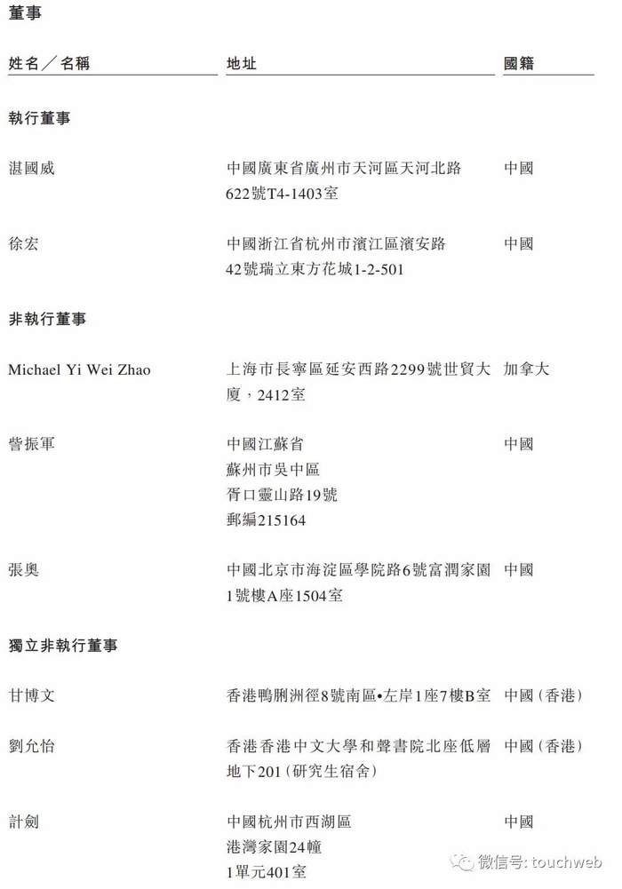 堃博医疗执行董事为湛国威、徐宏;非执行董事为Michael Yi Wei Zhao、訾振军、张奥;独立非执行董事为甘博文、刘允怡、计剑。