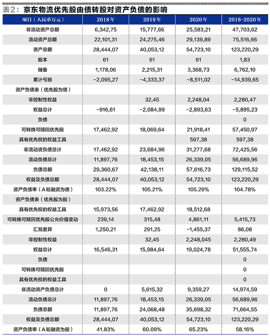 但是,如果会计上将优先股处理从债变为股后,2020年京东物流将从巨亏40.37亿元变为盈利8.23亿元,2018-2020年将累计减亏高达54.15亿元。