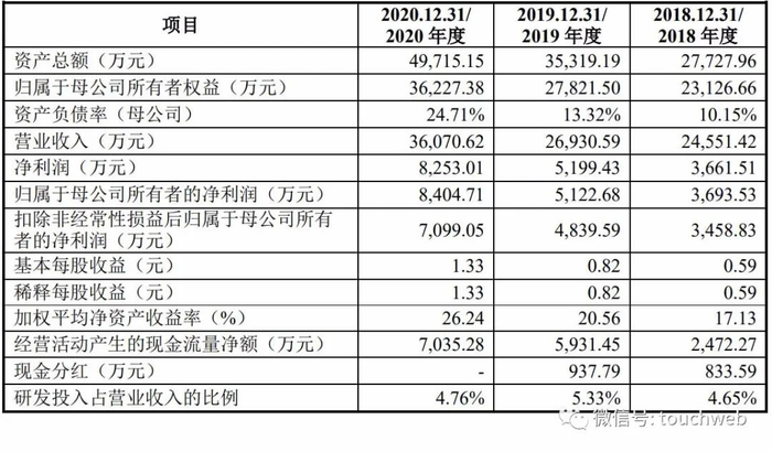 招股书显示,奇德新材2018年、2019年、2020年营收分别为2.46亿元、2.69亿元、3.6亿元;净利润分别为3661.5万元、5199.4万元、8253万元。