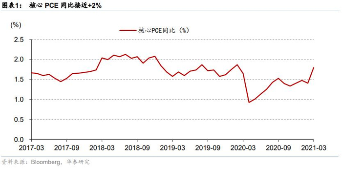 华泰证券表示,如果在接下来的数月中,核心PCE(非年化)环比连续超过 0.3%,则预示短期通胀上行“高度”可能超出美联储预期2%。同时,如果 TIPS 隐含的长期通胀预期重新上行,则市场对 6 月或 9 月议息会议中美联储提出“有条件”调整 QE 规模的时间表就会开始有所预期。