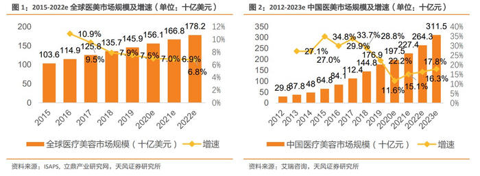 一、市场空间:医美行业高景气,2023年国内轻医美市场规模有望超3000亿