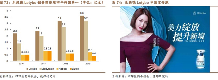乐提葆 Letybo 的问世帮助四环医药通过一跃进入中国医美药械行业的第一梯队,并将凭借有利的价格和迅速弥补中端价格带空白,公司目标三年内获取中国肉毒毒素市场 30%的市场份额。