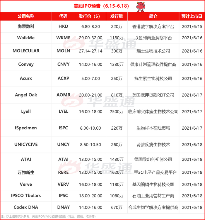而本周美股IPO市场预计将迎来14只新股,涉及在数字平台、生物科技技术和二手电子产品交易平台等。其中包括两只热门中概股,尚乘数科和万物新生。话不多说,让我们来看看这周的新股都有哪些看点吧~