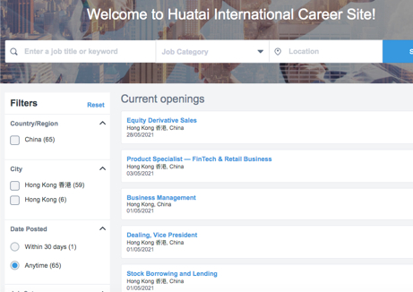 海通国际的招聘规模也跟随业务规模扩大,根据官网显示,海通国际在香港与北上深,还有伦敦新加坡与孟买都有招聘。在新加坡、孟买和伦敦招聘的职位有分析师、股权投资经理及副总裁等职位。而在北京、上海和深圳的招聘职位包含三个软件工程师职位和一个业务发展经理职位。