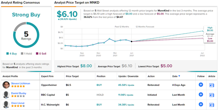Smith给予MannKind评价“跑赢大盘”评级,目标价为5美元,意味着未来有12%的上涨空间。