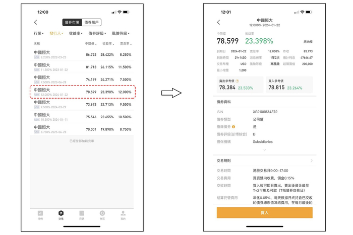 以恒大地产2022年到期的债券(EVERRE 8 1/4 03/23/22)为例,在华盛买入此债券,收益率达28.13%;而在其他平台买入此债券,则只获得27.23%的收益率,相差约0.9%。