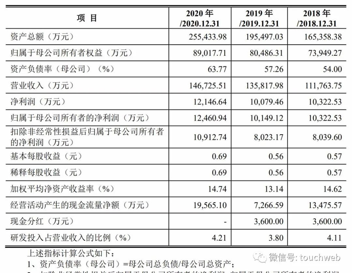 招股书显示,申菱环境2018年、2019年、2020年营收分别为11.18亿元、13.58亿元、14.67亿元;净利润分别为1.03亿元、1亿元、1.21亿元;扣非后净利分别为8039.6万元、8023万元、1.09亿元。