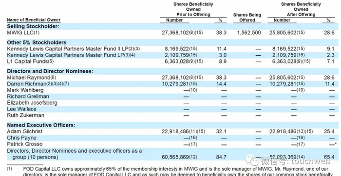 IPO前,MWIG LLC持股为38.3%,Darren Richman持股为14.4%。