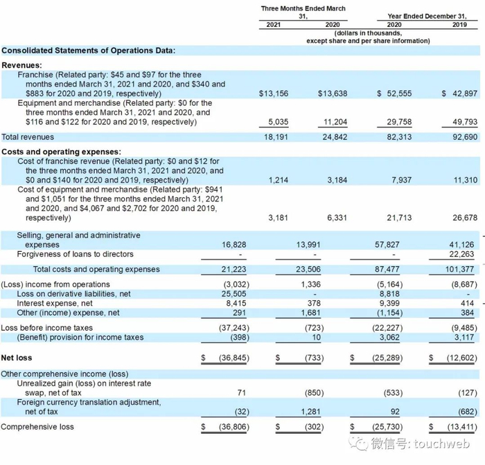 F45公司2019年、2020年净亏损分别为1260万美元、2529万美元;F45公司在2021年第一季度净亏损为3685万美元,上年同期净亏损为73万美元。