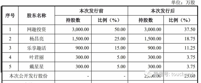 杨昌亮、叶君丽通过网趣投资间接持有公司50.00%的股份,杨昌亮直接及通过乐享趣活合计持有公司25.93%的股份,叶君丽直接及通过乐享趣活合计持有公司7.50%的股份。两人合计持有公司83.43%的股份。