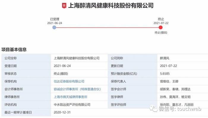 日前,醉清风的上市申请已经终止,原因是撤回。