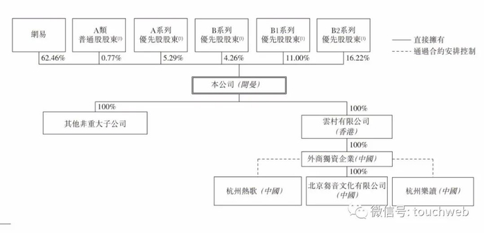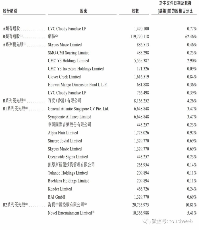 IPO前,网易持股62.46%,百度持股4.26%,Symphonic Alliance Limited、. General Atlantic Singapore CV Pte. Ltd.分别持股为3.47%,阿里持股为10.81%,Novel Entertainment持股为5.41%。