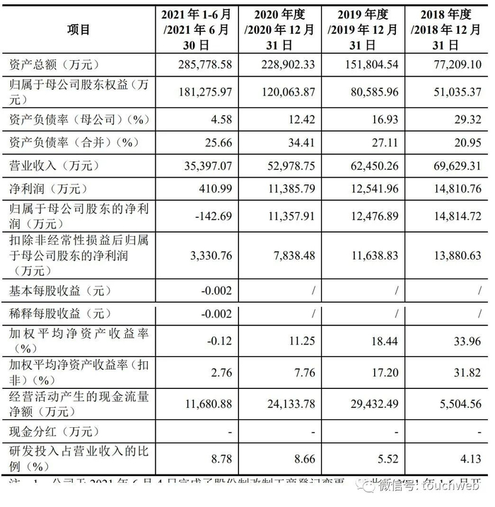 招股书显示,有研半导体2018年、2019年、2020年营收分别为6.96亿元、6.25亿元、5.3亿元;净利润分别为1.48亿元、1.25亿元、1.14亿元;扣非后净利分别为1.39亿元、1.16亿元、7838万元。