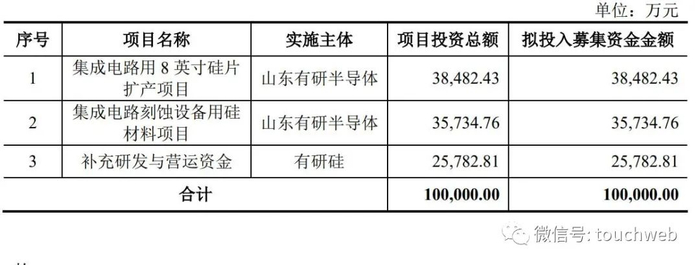 其中,3.85亿用于集成电路用8英寸硅片扩产项目,3.57亿用于集成电路刻蚀设备用硅材料项目,2.6亿用于补充研发与营运资金。