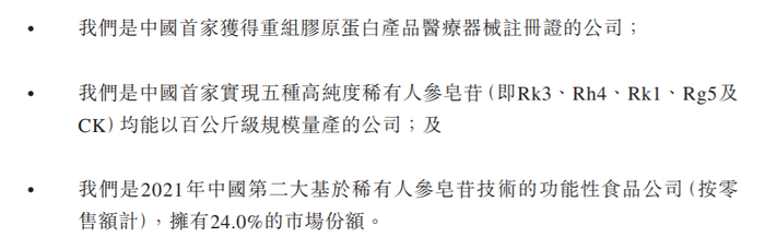 稀有人参皂苷扩产也是投资者质疑的焦点之一。招股书显示,稀有人参皂苷药理功效包括且不限于抑制肿瘤生长及增强免疫能力,其中稀有人参皂苷Rg3已在中国获批准用于临床癌症治疗,其他种类的皂苷已被广泛的用于制作能够增强免疫能力、改善睡眠的健康产品。