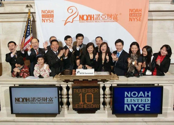 诺亚财富于2010年11月10日在纽交所上市并开始交易,股份代码为“NOAH”。截至美东时间6月21日收盘,诺亚财富报17.03美元,总市值10.25亿美元。