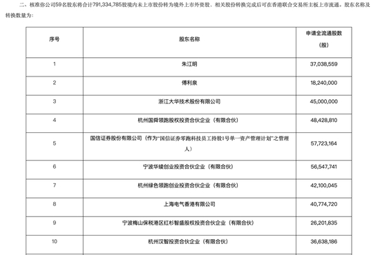 其中,朱江明直接及间接持股11.89%,傅利泉直接及间接透过宁波华暘及宁波顾麟控制的13.53%权益,陈爱玲间接透过宁波华绫控制的5.59%权益。