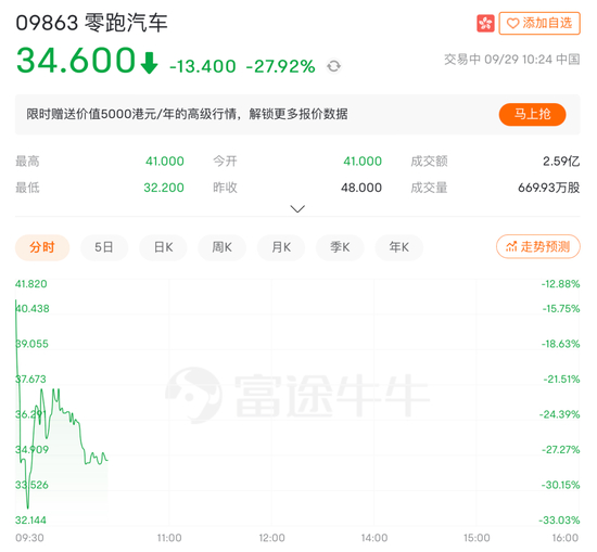 早在昨日的暗盘交易中,零跑汽车就收跌13.96%,报41.3港元。