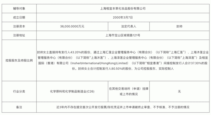 时隔十年,相宜本草终于又迎来IPO的临门一脚。日前,中国证监会官网披露,上海相宜本草化妆品股份有限公司已与中国国际金融股份有限公司签署了上市辅导协议,正式启动A股IPO进程。