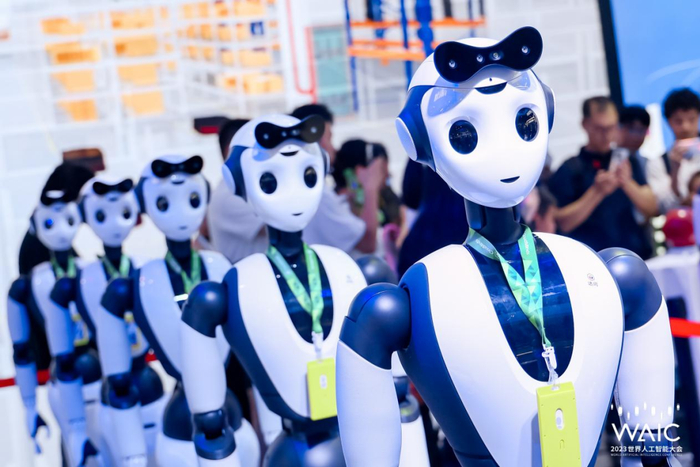 在WAIC 2023现场,达闼展示了集成RobotGPT的具身智能机器人。机器人充满科技感的外表和一系列令人惊叹的表演,吸引了观众的热情关注。