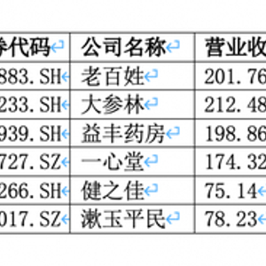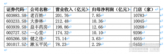 如上市连锁药店龙头老百姓(603883.SH)、大参林(603233.SH)、益丰药房(603939.SH) 及一心堂(002727.SZ),2022年实现收入分别为201.76亿元、212.48亿元、198.86亿元和174.32亿元,与高济健康200亿元的规模几乎不相上下。