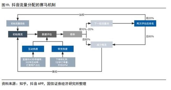 “花无百日红”的现象,是抖音的流量机制决定的。国信证券分析指出,抖音的流量分配“重算法、轻用户”,所有直播均需服从算法优先原则,具体的流量分配机制遵循“赛马机制”+评分定时归零的规则。