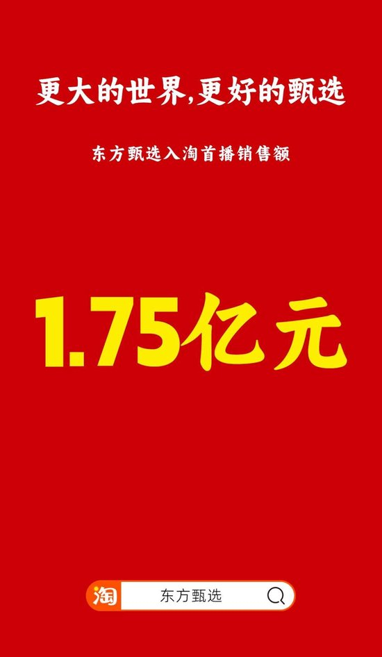 近日,东方甄选开启入淘首秀,单日全场带货销售额高达1.75亿元,打破东方甄选单日带货销量的最高记录,远超市场预期。