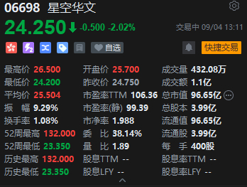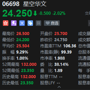 9月4日消息,《中国好声音》母公司星空华文股价再跌2%,总市值仅96.65亿港元。