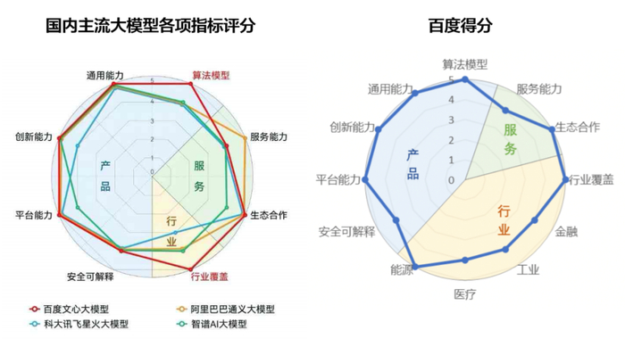 这在一定程度上也解释了为何百度能在这一波大模型浪潮中屡获第一——文心大模型2019年发布,中国第一;文心一言2023年发布,中国第一,全球大厂第一;文心一言首批对公众开放,中国第一。据IDC发布的《AI大模型技术能力评估报告,2023》显示,文心大模型3.5拿下12项指标的7个满分,综合评分、算法模型、行业覆盖均为第一。“不久后,我们就将推出文心大模型4.0版本。”李彦宏曾在Q2财报会上透露。