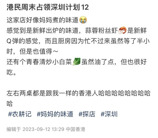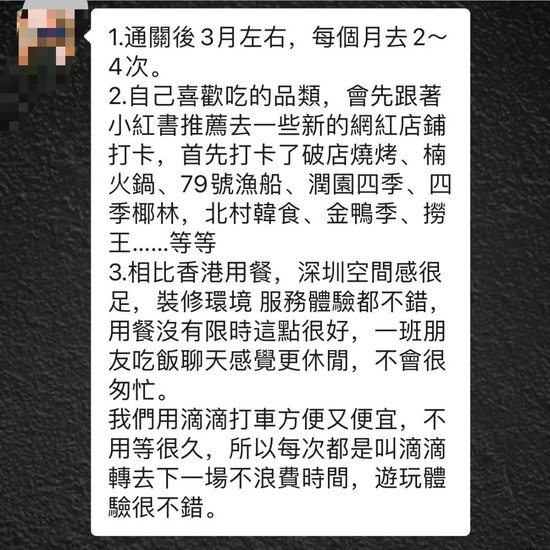 如今,和她一样的港人已经不在少数。 为了一尝深圳美食, 港人们甚至准备了详尽的“占领深圳计划”。