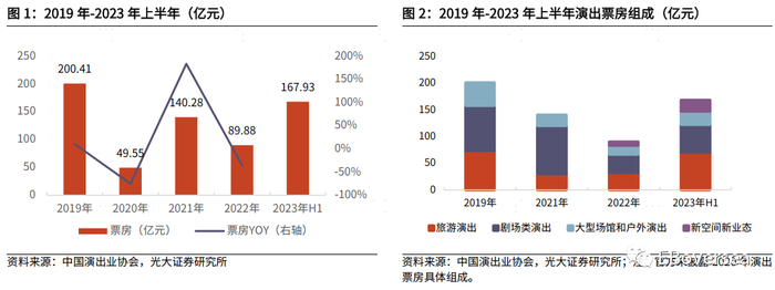 事件:2023年1-8月全国演出市场票房收入270.7亿元,已远超2019年全年演出票房200.41亿元。23年上半年全国营业性演出票房收入167.93亿元,23年暑期(7月1日-8月31日)全国演出市场票房收入102.77亿元。23年9月19日,阿里影业宣布拟以配股方式向阿里巴巴控股收购经营“大麦”品牌的Pony MediaHoldings Inc. 100%股权,交易预计于23Q4完成。