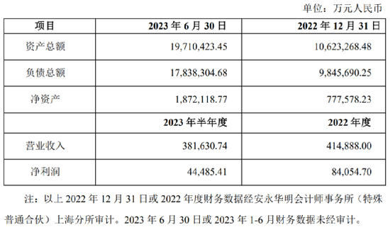 而本次上市公司发布的公告,还披露了蚂蚁消金2023年上半年的业绩情况。截至今年6月30日,蚂蚁消金资产总额1971.04亿元,负债总额1783.83亿元,净资产规模187.21亿元;今年上半年公司实现营业收入38.16亿元,实现净利润4.45亿元。