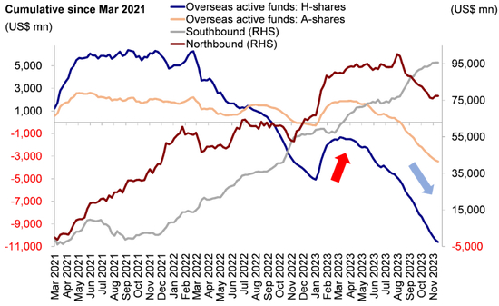 图表:海外主动型基金过去20周连续流出海外中资股市场
