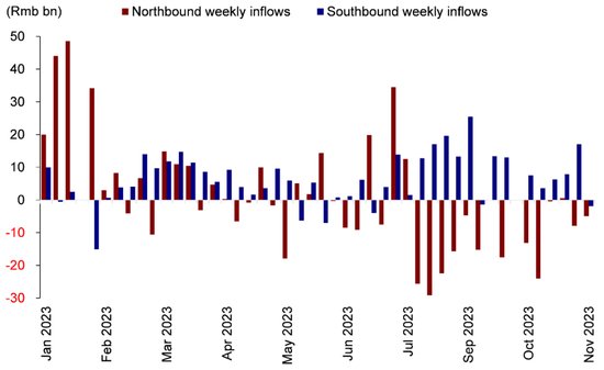 5) MSCI中国指数半年度调整结果公布,将于11月30日收盘后调整,12月1日生效。此次调整中,MSCI中国指数新增19只成分股,其中包括零跑汽车和华晨中国两支港股,剔除19只成分股,其中包括9只港股,分别为海螺创业、东岳集团、九毛九、深圳国际、颐海国际、北京首都机场股份、中国金茂、华润水泥控股、美东汽车[8]。