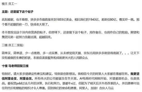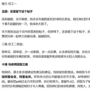 马云鲜见地回应了这个帖子。「请大家多提建设性意见和建议。特别是创新想法。我相信今天的阿里人大家都在看都在听。我更坚信阿里会变,阿里会改。」他说。