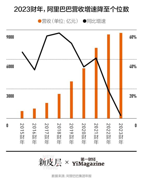 分拆在今年3月公开提出,但阿里巴巴内部2021年就在酝酿这项计划。当年,阿里巴巴GMV增速第一次降为个位数,净利润下降10%;