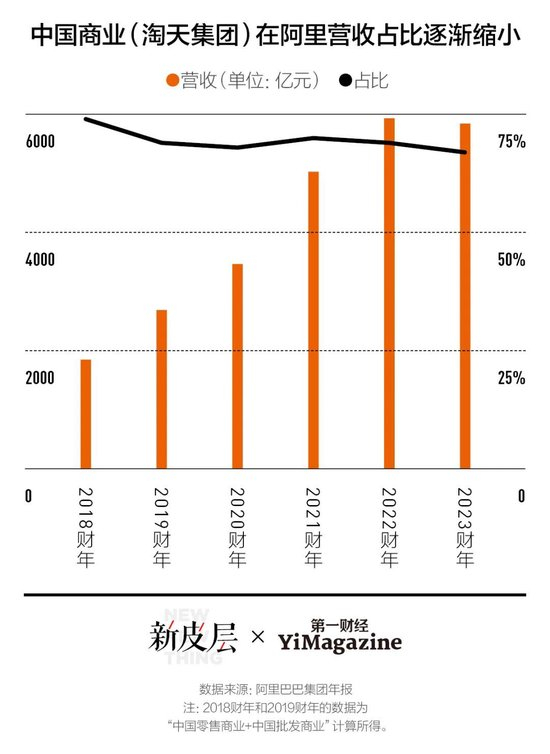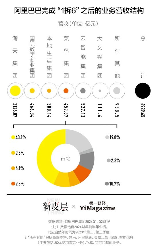 至此,四大块板的结构中,电商业务仍占了一半——阿里巴巴针对电商生意取消了过去“B端”和“C端”的划分方式,改按市场分成了“中国”和“海外”两块。