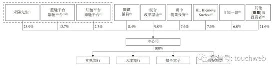 宋阳直接持股为23.9%,蓝驰平台持股为13.7%,红驰平台持股为2.3%,李双江持股为7%,罗红持股为1.4%,混合改革基金持股为9%,国中创业投资持股为7.6%,HL KlemoveSuzhou持股为7.5%,自知一号持股6%。