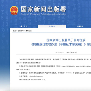 据了解,《网络游戏管理办法(草案征求意见稿)》的意见反馈截止时间为2024年1月22日。