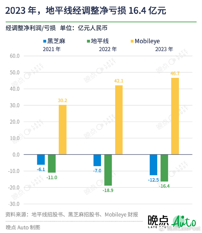 2021 年至 2023 年,地平线经调整后的净亏损为 46.3 亿元,其中 2023 年的净亏损 16.4 亿元。