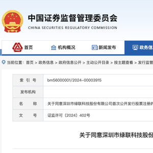 中国证券监督管理委员会收到深圳证券交易所报送的关于绿联科技首次公开发行股票并在创业板上市的审核意见及绿联科技注册申请文件。根据有关规定,经审阅深圳证券交易所审核意见及绿联科技注册申请文件,现批复如下:同意绿联科技首次公开发行股票的注册申请。