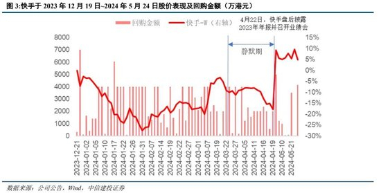 在此自动回购计划下,快手于2023年12月19日~2024年5月24日区间内,通过集中竞价交易方式累计进行了74次股票回购,且于2024年4月22日年报披露前一个月内亦进行过多次股票回购,累计回购金额达18亿港元。