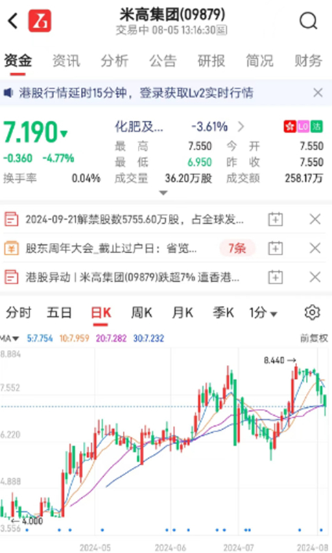 (3)没基本面支撑。一般高控的公司都没有基本面支撑,比如本次被监管的米高集团,年报业绩出现大幅度下滑不说,媒体端也很少看到公司相关的新闻,其客户高度集中且钾肥价格在22年因为俄乌事件飙升之后,23年就从最高的1202美元降低至23年的300美元每吨,今年的价格也基本在300美元左右。业绩和产品售价的不协调也是一眼可知。