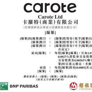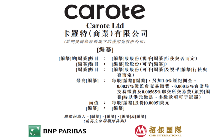 据港交所8月30日消息,卡罗特(商业)有限公司(Carote Ltd)通过港交所主板上市聆讯,法国巴黎银行与招银国际担任联席保荐人。