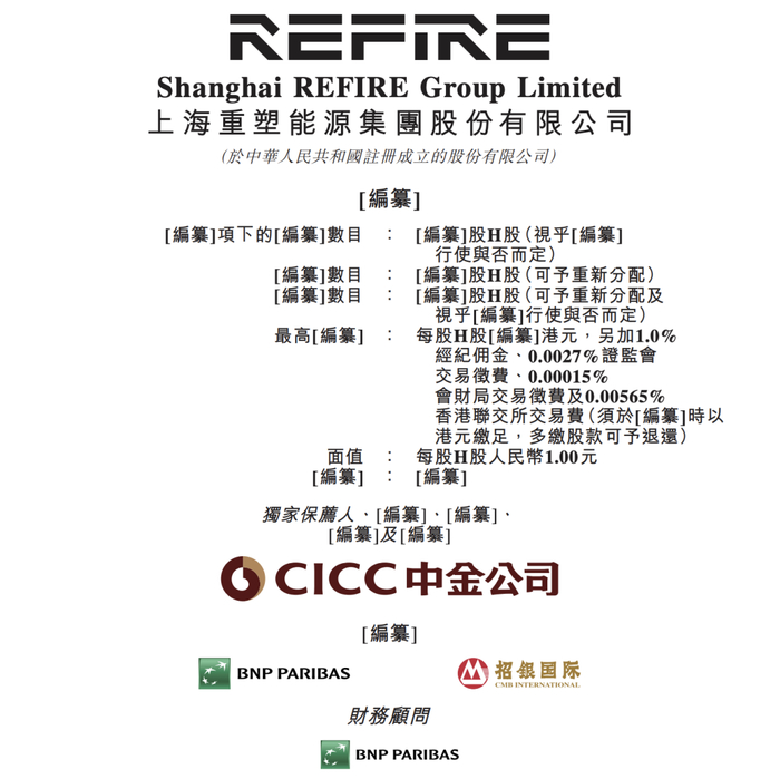 据港交所9月2日披露,上海重塑能源集团股份有限公司递表港交所主板,中金公司担任独家保荐人,法巴与招银国际为整体协调人,财务顾问为法巴。