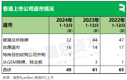 今年共 49家上市公司从港交所退市,其中:
